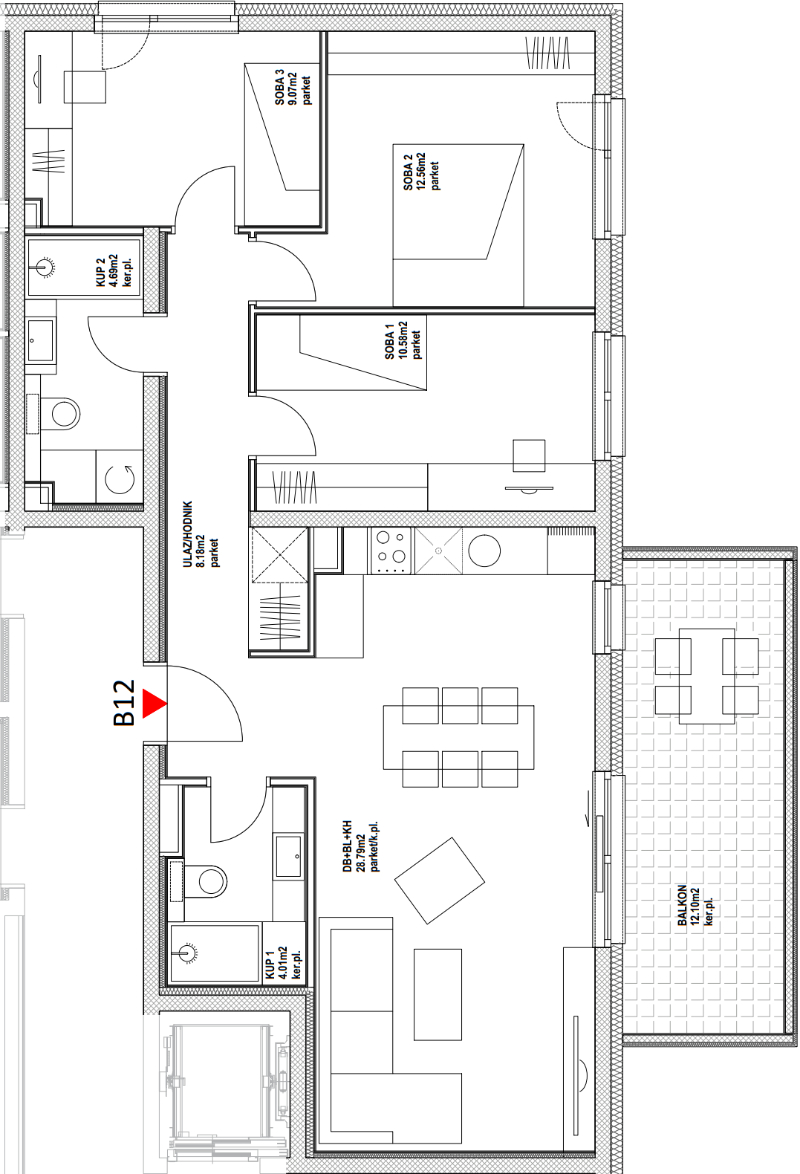 Balkon - natkriveni (12,10m2 x 0,75)