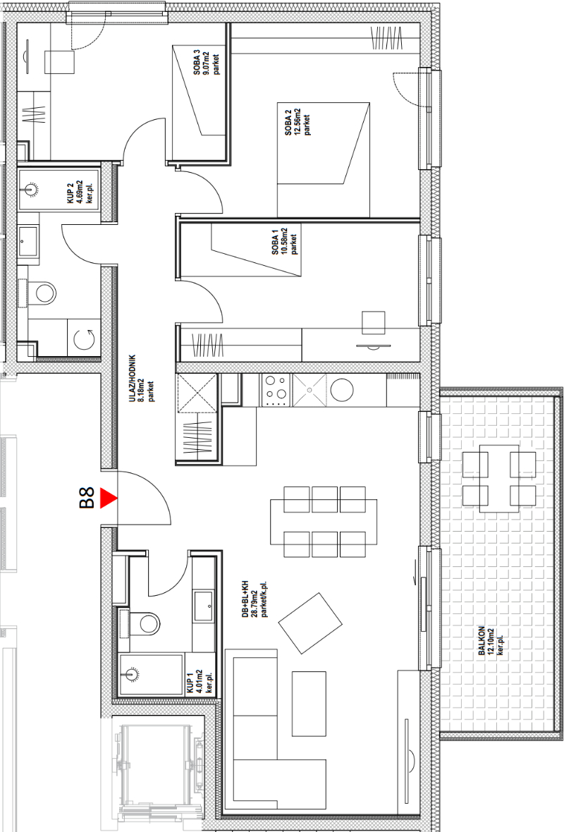 Balkon - natkriveni (12,10m2 x 0,75)